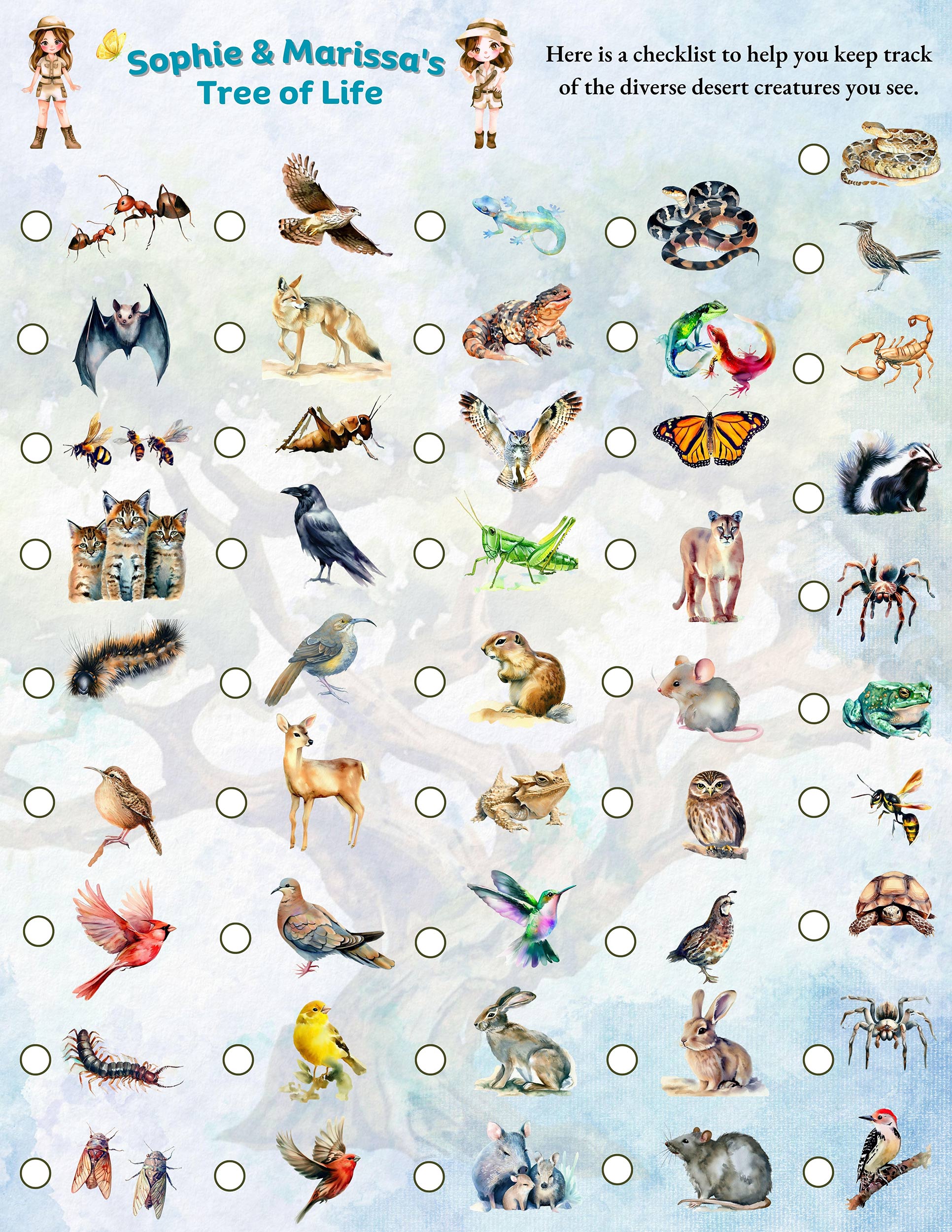 Download a PDF Checklist of all the desert creatures shown in the book, so you and your family can track your own!
